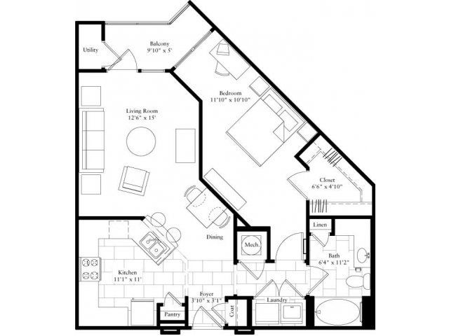 - 1 Bedroom / 1 Bath (770-793 sq')