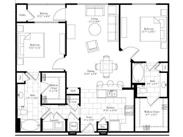 Sizes: 2 Bedroom / 2 Bath - 1160 sq'